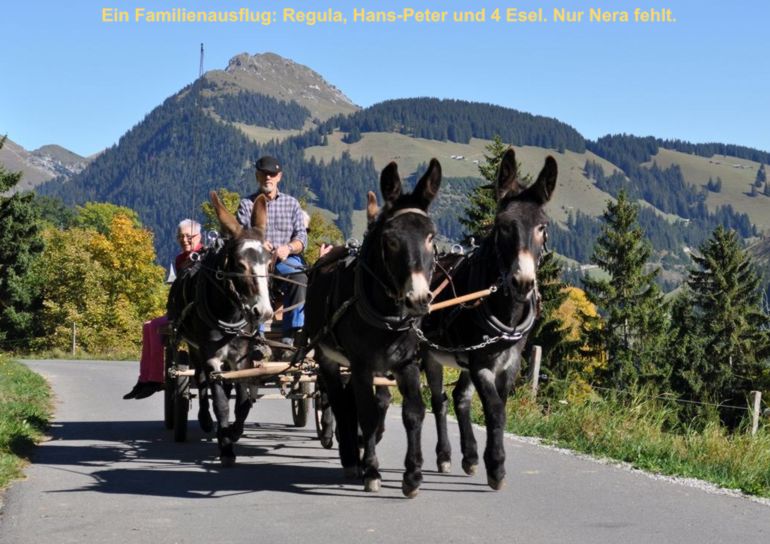 Alle sind wir ebenfalls sehr verwöhnte Familienmitglieder und wenn die meisten Leute meinen, wir seien störrisch, so ist das gar nicht wahr! Es ist alles nur eine Frage der Intelligenz und man muss mit uns nur richtig kommunizieren. Das hat unser Chef ganz gut begriffen und er ist eben unser „Ober-Esel“, darum kann er mit uns alles machen.