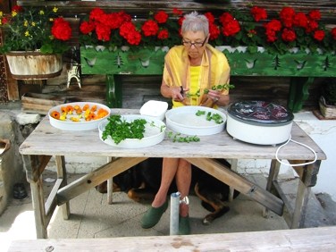 Nur kochen allerdings genügt ihr nicht. Sie setzt Ihren ganzen Stolz darauf, möglichst viele Ingredienzen selbst herzustellen und in Ihrer Küche stapeln sich den auch Gläser mit mannigfaltigen Tee- und Gewürzkräutern, eine wahre Orgie von Farben und Formen, die das Herz jedes Betrachters erfreuen.